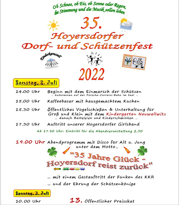 usw., wäre dieses Super-Event in Hoyersdorf nicht möglich. Natürlich